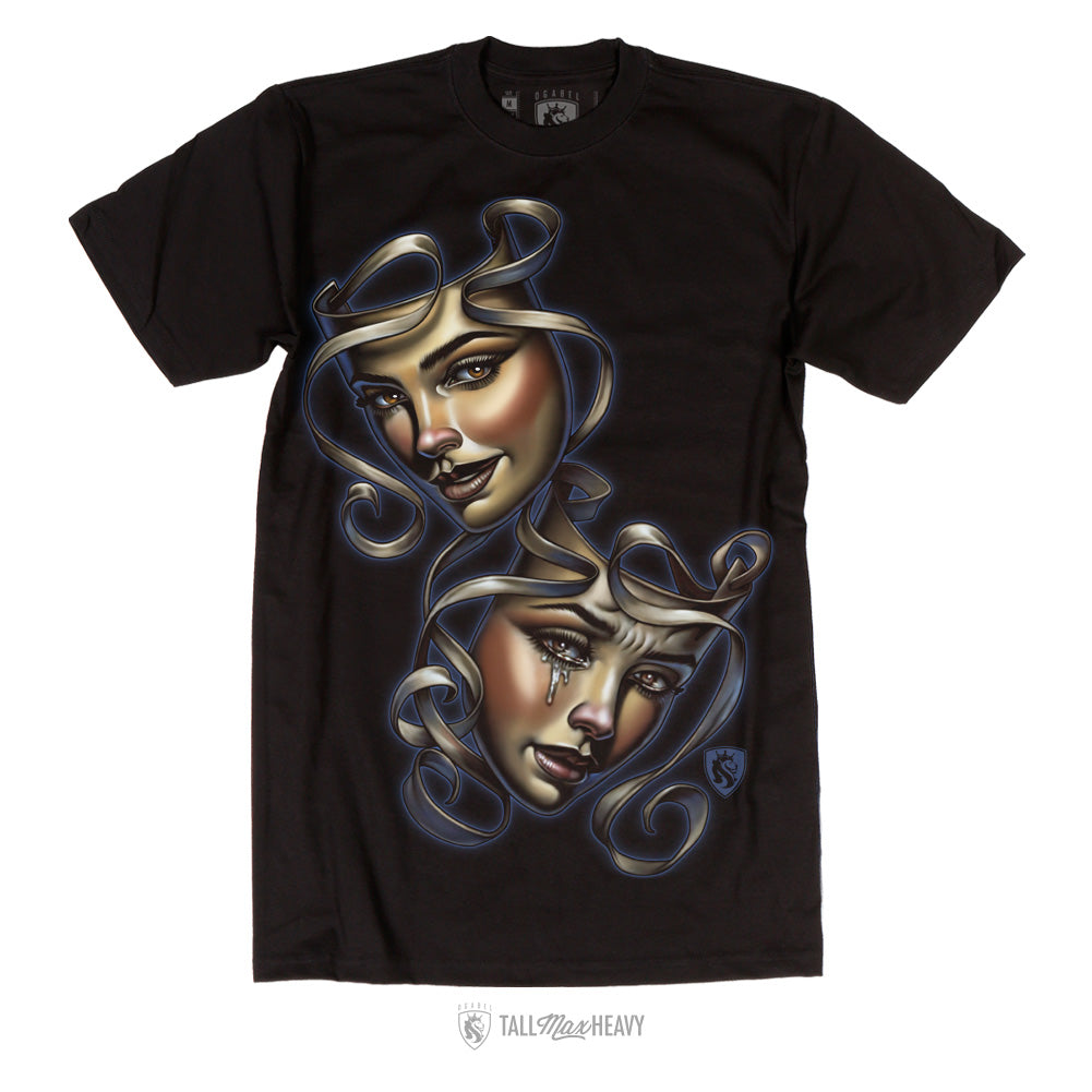 The "Sonrisa Y Lagrima" Design For Men tee boasts double-needle bottom hem and sleeves as well as shoulder-to-shoulder tape to ensure durability and comfort during wear. It has also been preshrunk to minimize shrinkage after washing.